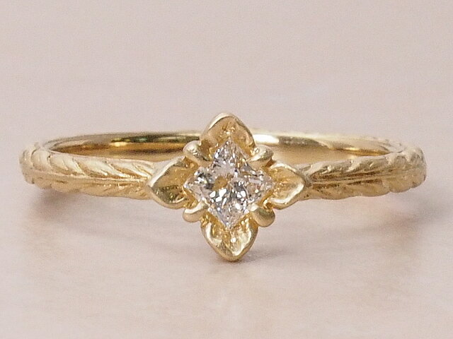 ローリーロドキン loreeRodkin プリンセスカットダイヤリング ロータスリング 彫金エングレービング 18KYG艶消しイエローゴールド エングレイブド 8.5号【中古】【ロイヤルブルー】【送料無料】
